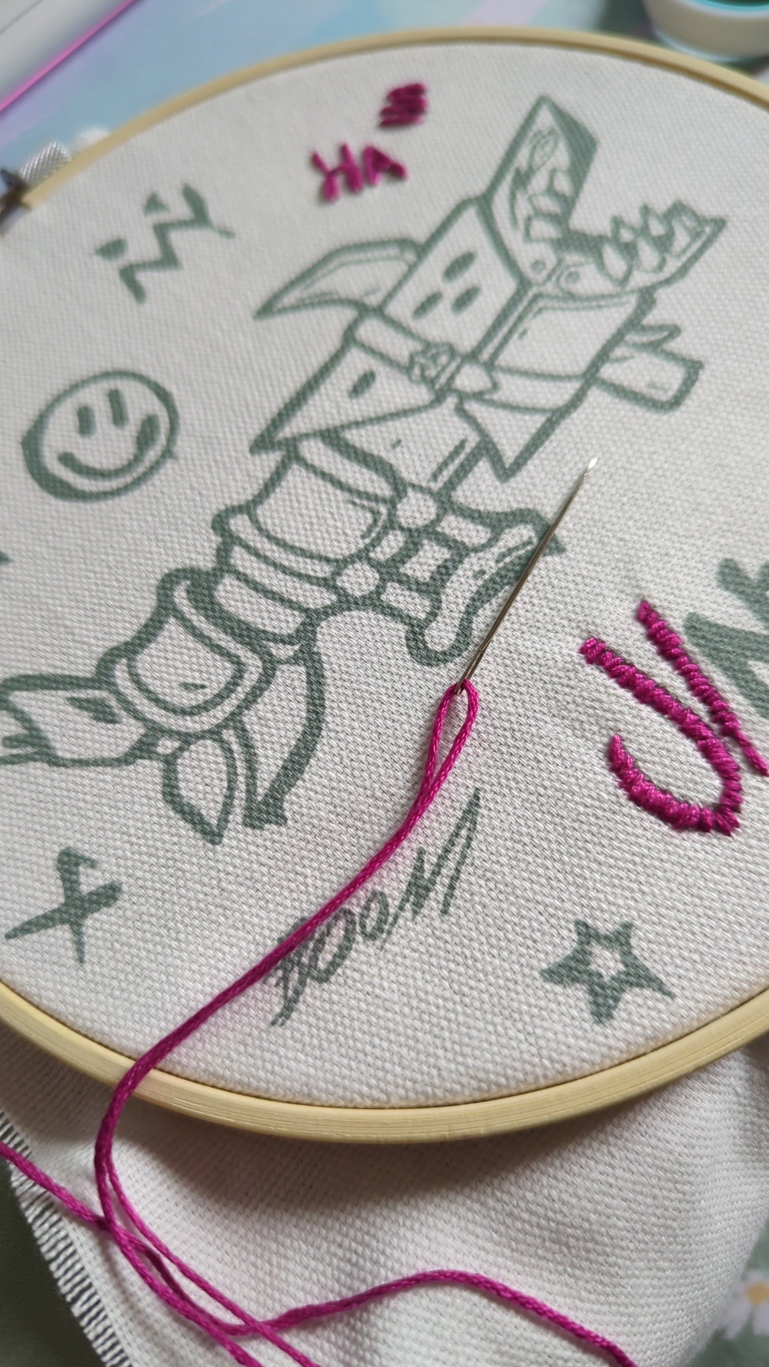 The design can be completed in a standard 7" (18cm) round wooden hoop - sold separately or use your own! You will need to decide how to stitch the design using simple hand embroidery stitches.