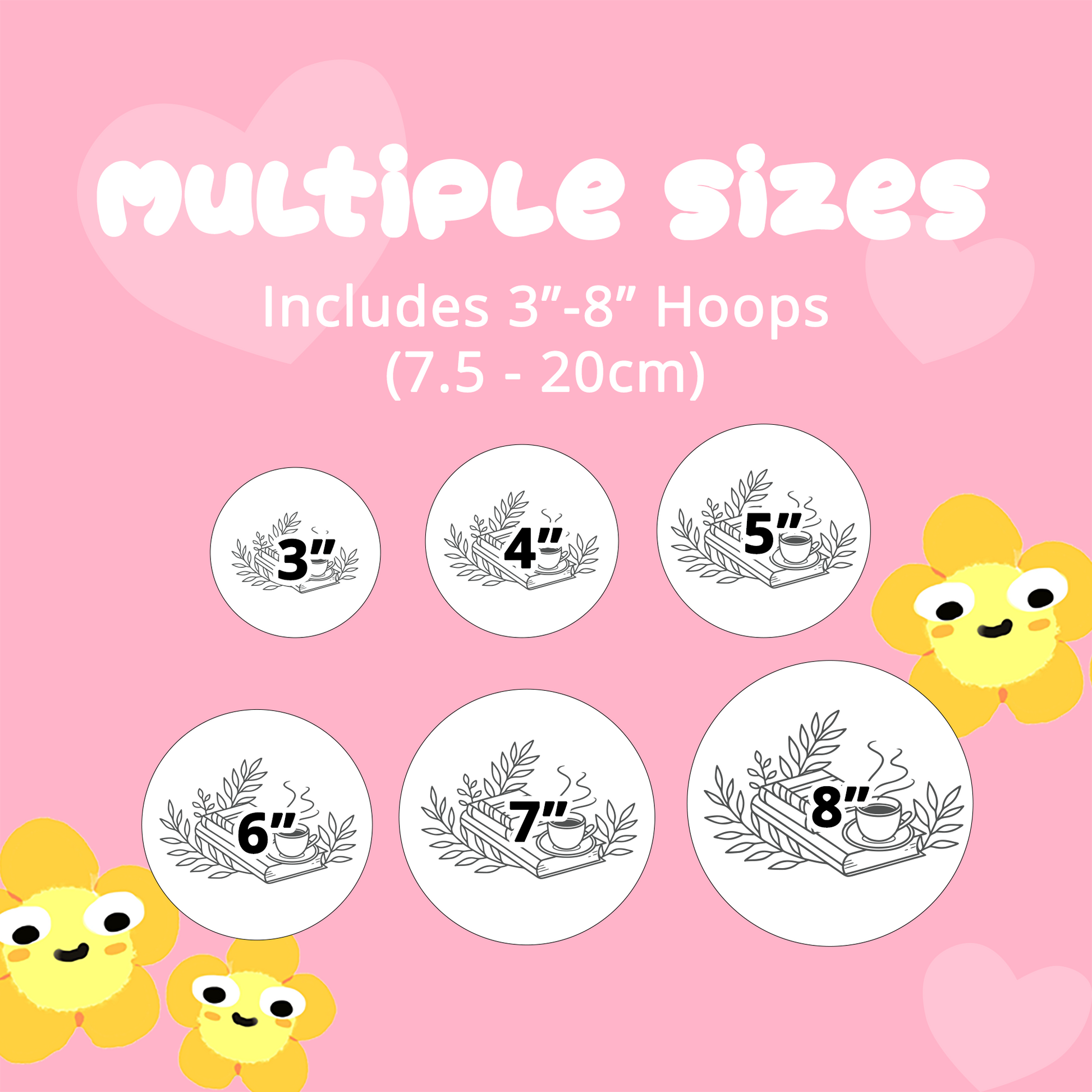 You can choose which size hoop best suits you, but be mindful that designs with small details are better suited to larger hoops. This pattern is in a PDF format and recommended to be transfered onto cotton fabric and stitched using hand embroidery.