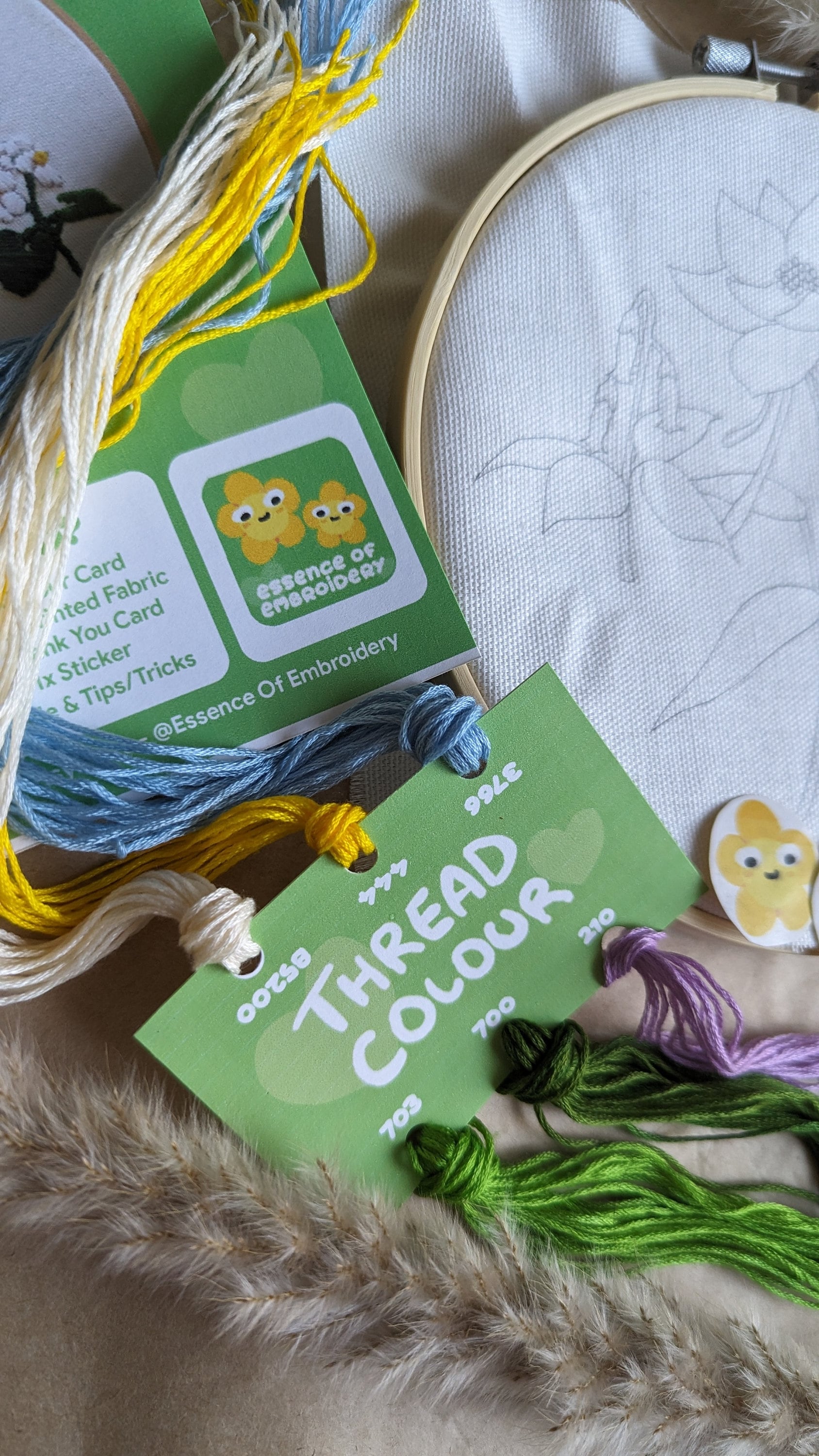 This kit contains everything you need to make this beautiful design. It's made to teach you new skills and hopefully encourage you on your embroidery journey. The instructions include a colour guide, diagrams for each stitching technique, and tips & tricks! With only 2 types of stitches used, it's the perfect entry kit for a wonderful hobby.