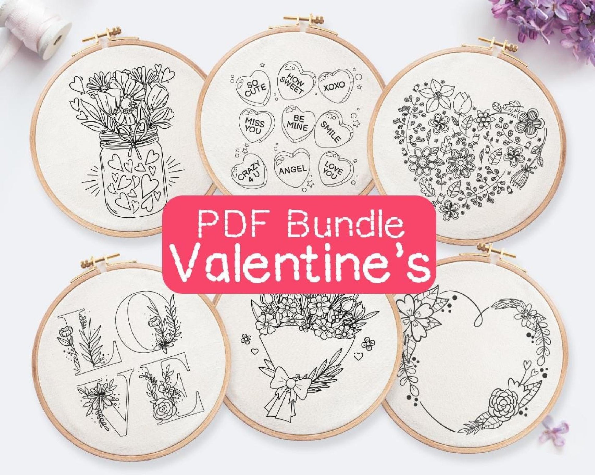 Valentine's Day Embroidery Pattern Bundle 10 Pack